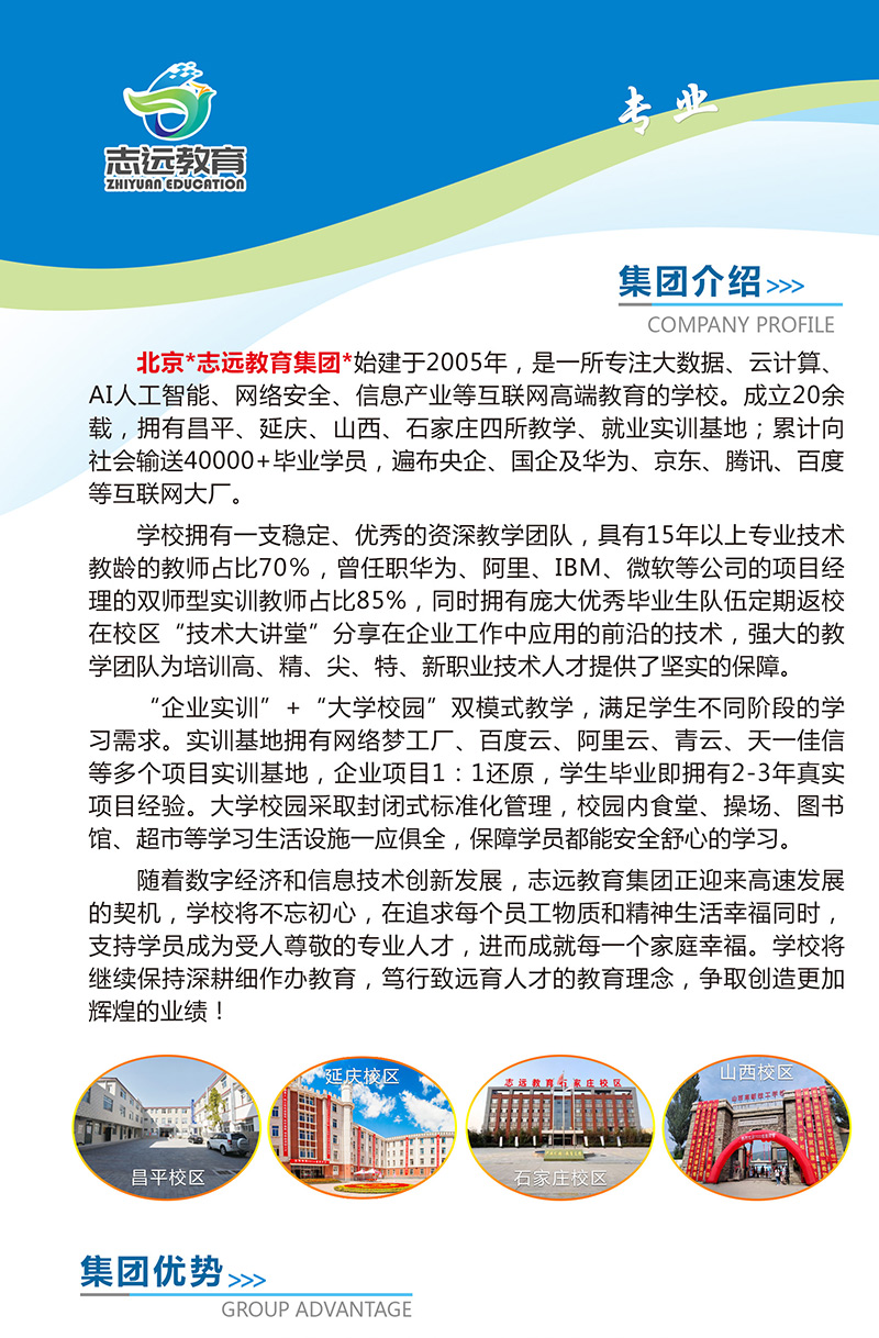 北京、石家庄志远教育(原北大青鸟)(多所校区供选)建校20余年、培训高端精英学员遍布全国各地。