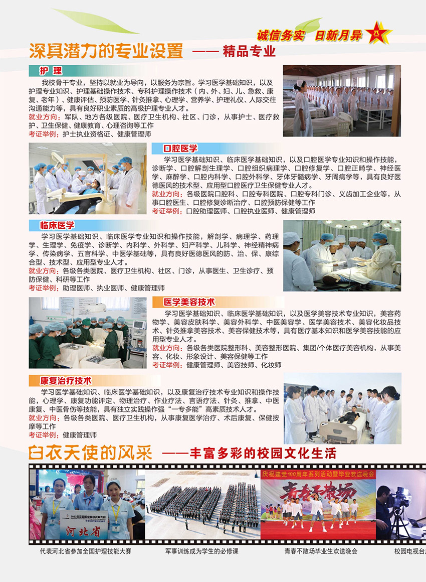 是一所以培养护士为骨干专业的特色学校。